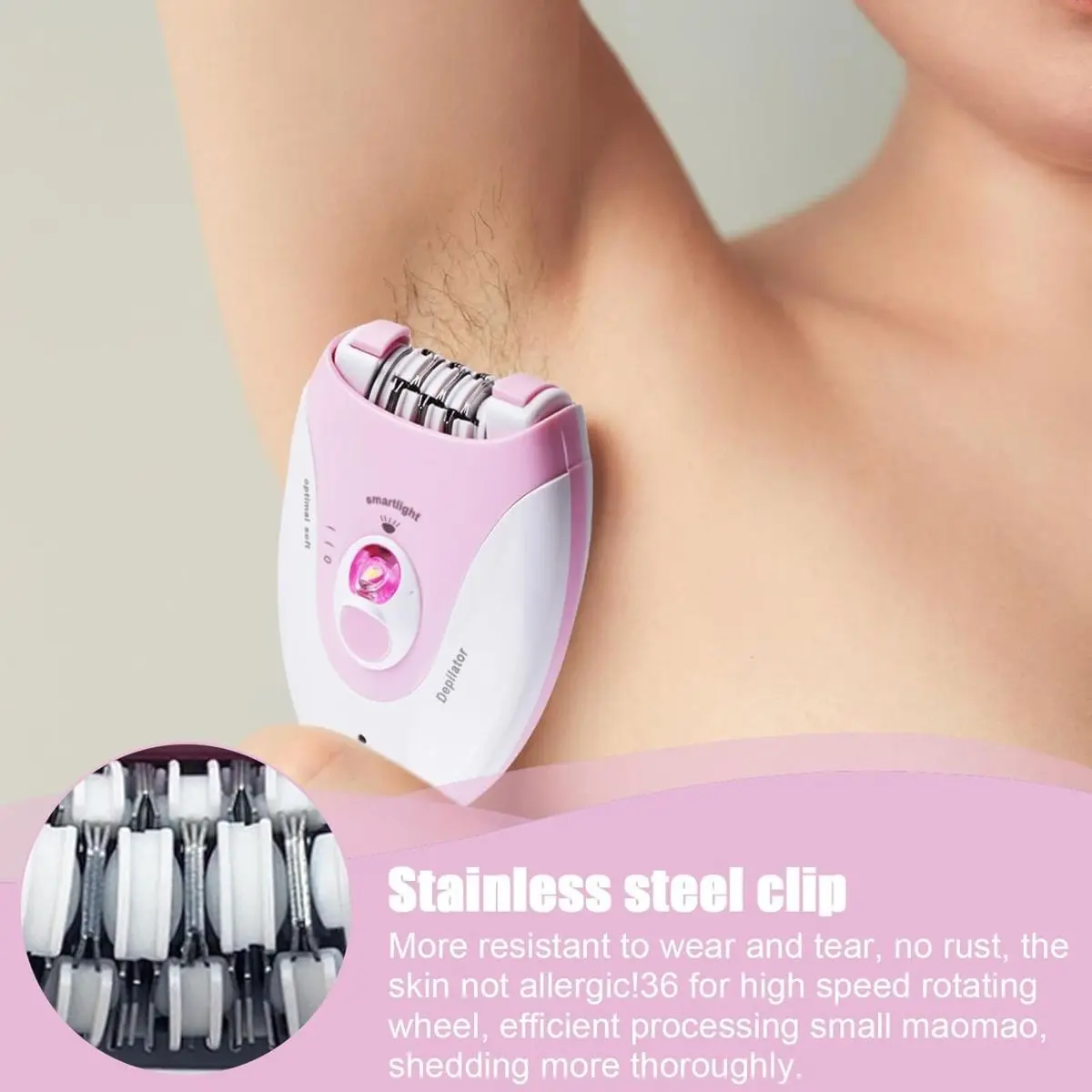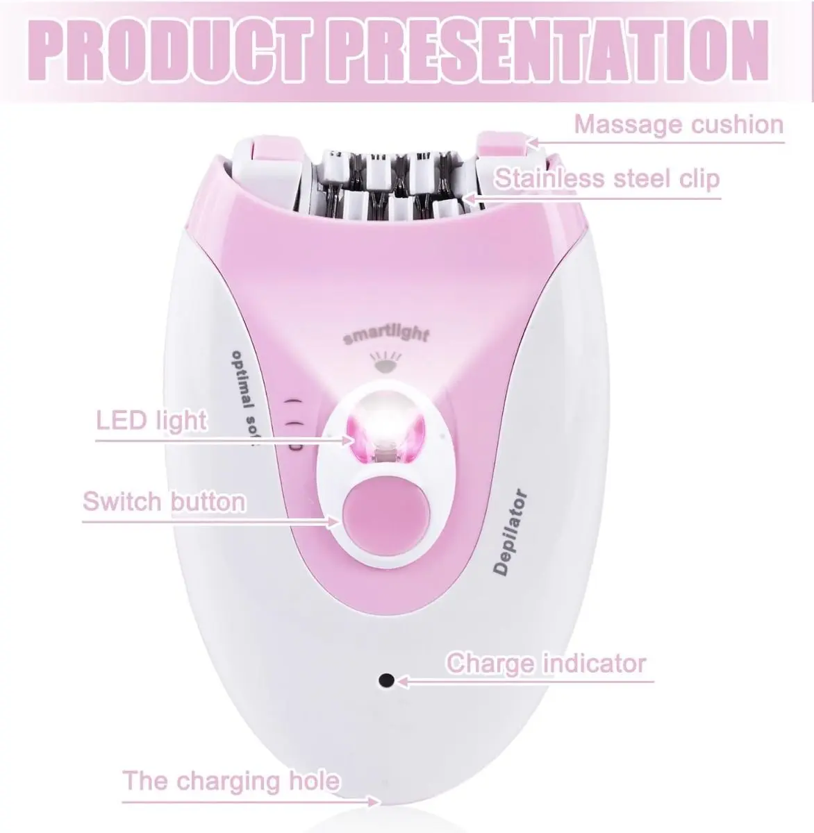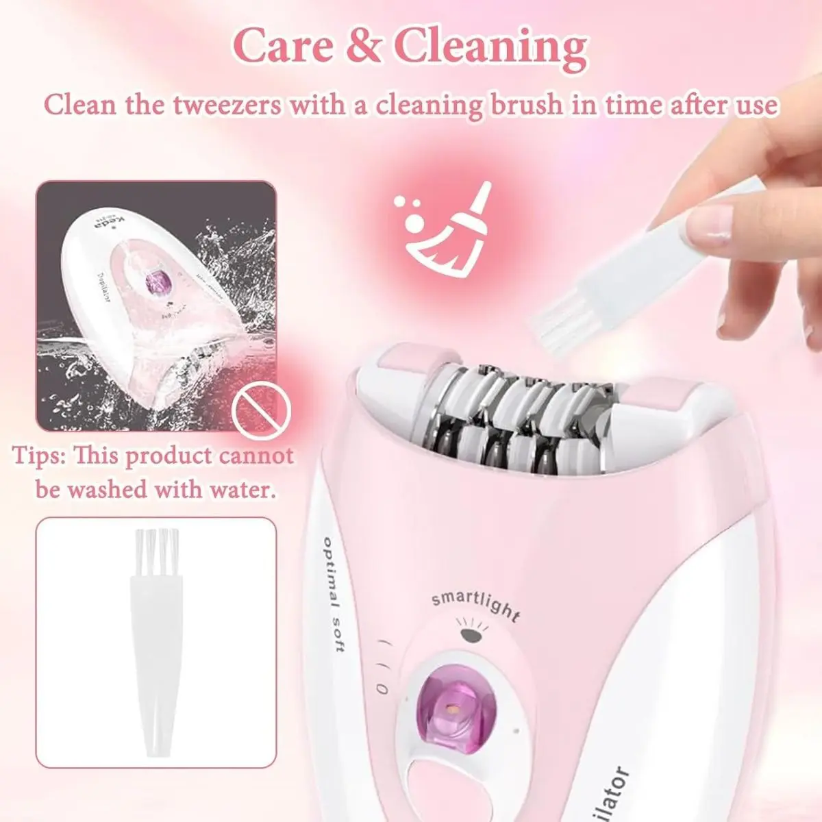 Fácil de limpiar e instalar: la depiladora para mujer también es muy cómoda de limpiar. Simplemente use el cepillo de limpieza incluido para eliminar los residuos de pelo en el cabezal de afeitado, luego límpielo suavemente con una toalla húmeda para limpiar el cuerpo (no lavar). Por favor, límpielo a tiempo después de cada uso para prolongar la vida útil del dispositivo y facilitar su próximo uso.